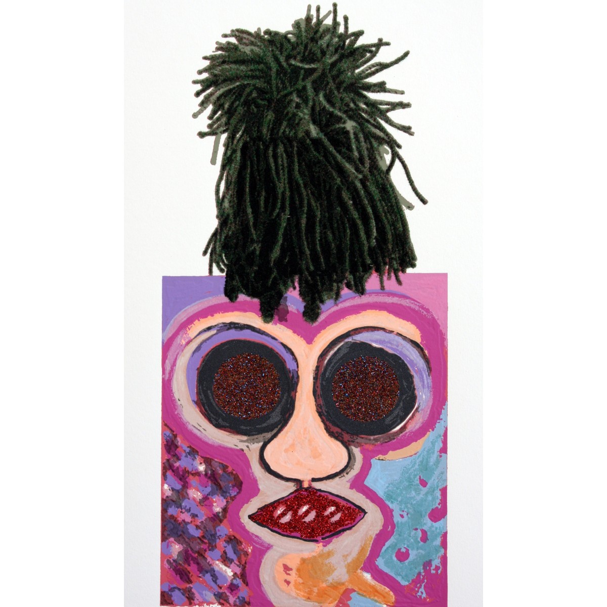 In quest'opera tardiva, Enrico Baj mette in scena un "teatro della memoria" popolato da figure burattinesche e maschere grottesche. Attraverso un collage raffinato e toni gessosi, l'artista trasforma il volto umano in un enigma grafico, dove cerchi magnetici e silhouette fluttuanti creano un'atmosfera sospesa, intrisa della tipica ironia patafisica del maestro.