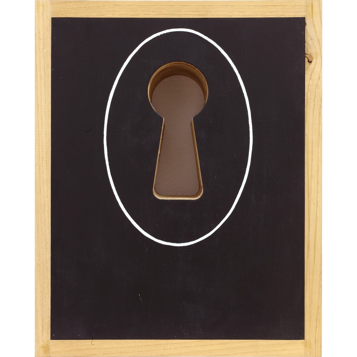 La scultura gioca sulla dualità di apertura e segreto: il fronte in legno chiaro presenta una toppa metallica e la parola grafica "KEY"(Chiave). Il retro è dipinto di nero opaco e mostra la stessa toppa intagliata, ma incorniciata da un cerchio bianco disegnato a mano. La "Key Box" è un oggetto concettuale che unisce la semplicità formale dell'assemblaggio alla profondità della chiave e della conoscenza.