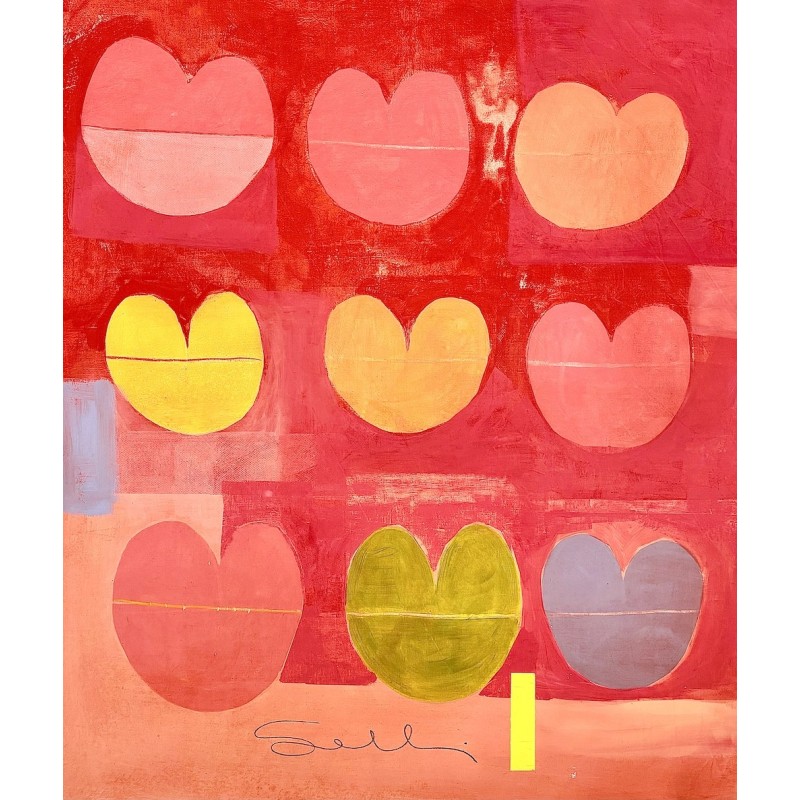 Quest'opera figurativa di Marcello Scarselli è un omaggio alla canzone di Fabrizio De André, caratterizzata da una dominante di rosso brillante e tonalità calde. La composizione è strutturata in una griglia di nove forme stilizzate a "bocca" o petalo, disposte su tre file. Queste forme variano in colore dal rosa pallido al giallo, all'arancione, al verde oliva e al malva, creando un ritmo visivo vibrante.